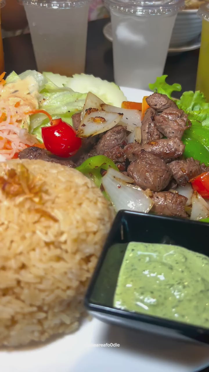 Filet Mignon Shaken Beef with Fries over Rice: $24.95